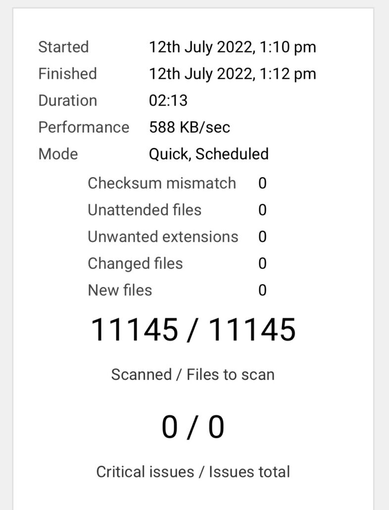 AS per the 12 July, the site integrity is sound with no issues: